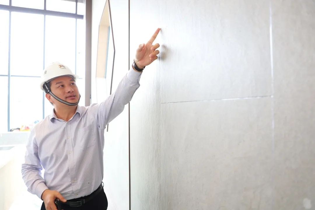 北投荷院項目直達北投荷院項目售樓部施工現(xiàn)場后,吳洪偉一行實地查看了售樓部廊道、前玻璃地板、外立面、內(nèi)裝修、園林景觀等建設(shè)情況以及安全生產(chǎn)情況,聽取了項目負責人對售樓部建設(shè)進度的匯報,并對售樓部的品質(zhì)建設(shè)進行現(xiàn)場指導(dǎo)。