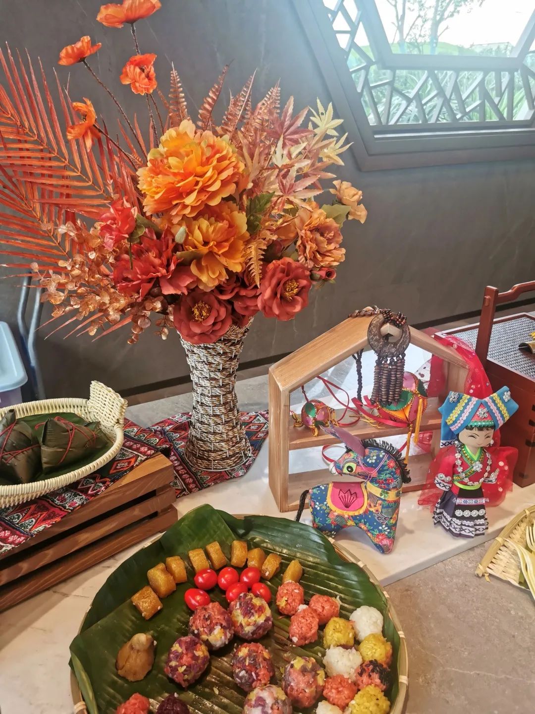 挖掘機、推土機、運輸車……北投荷院項目施工現場車輛穿梭,機器轟鳴,一片繁忙景象,多樓棟主體結構已完成封頂。項目營銷中心推出壯族服飾體驗、壯鄉簸箕宴、油紙傘手作等“三月三”民俗文化活動,吸引了眾多客戶到訪,置業顧問熱情向客戶介紹項目情況,現場熱鬧非凡。