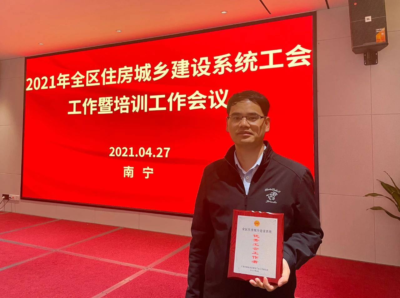 ▲彭先錦榮獲2020年度全區(qū)住房城鄉(xiāng)建設(shè)系統(tǒng)優(yōu)秀工會(huì)工作者