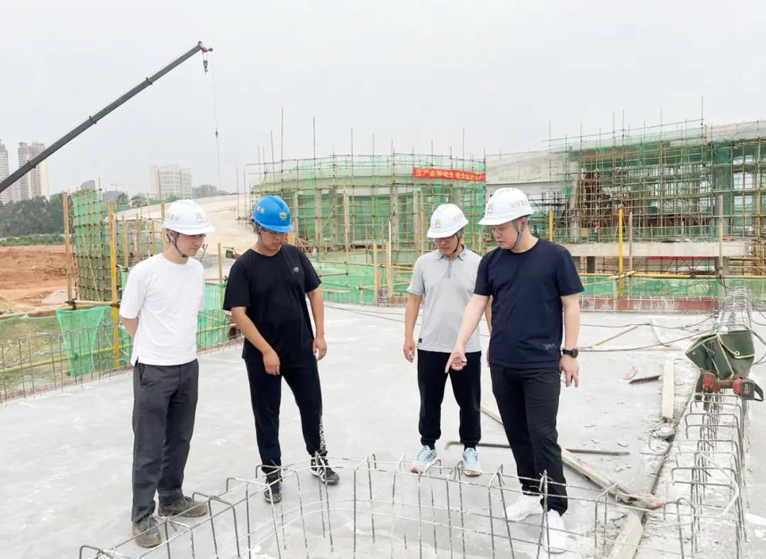 ▲直屬單位大正混凝土公司黨支部書記、董事長、總經(jīng)理周世財帶隊深入項目施工現(xiàn)場