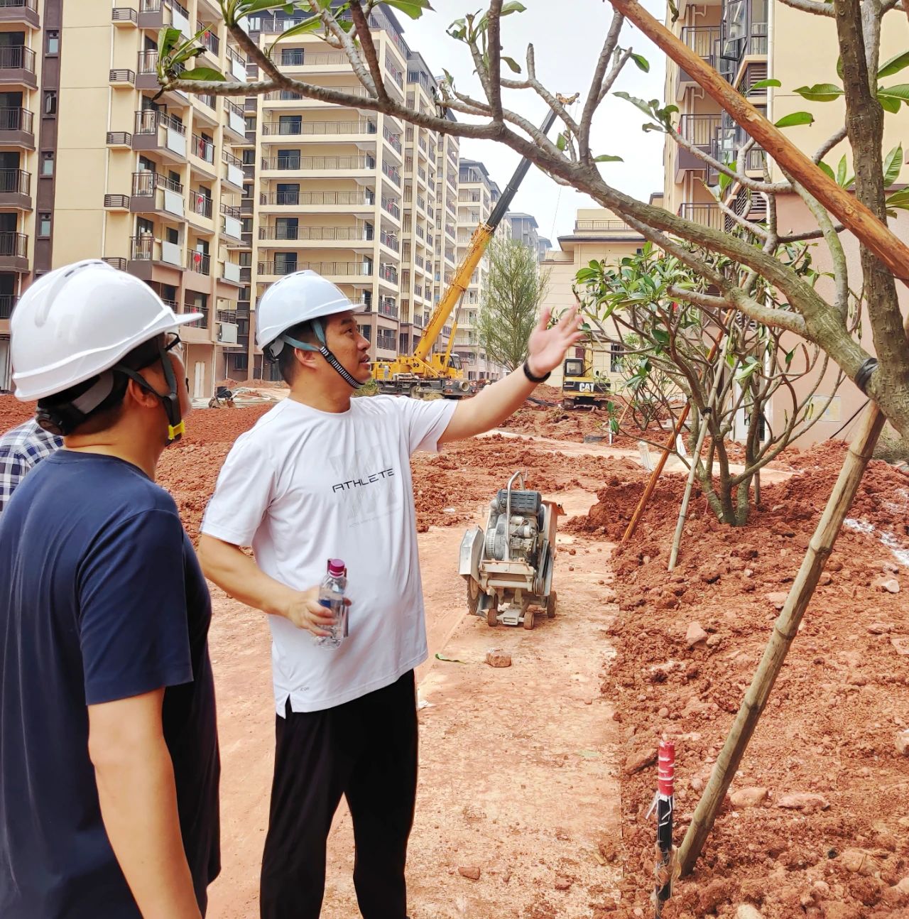 ▲直屬單位裝飾裝修公司黨支部書記、執(zhí)行董事、總經(jīng)理尹傳勇在南寧五象智慧健康城項目檢查園林景觀設(shè)計工作