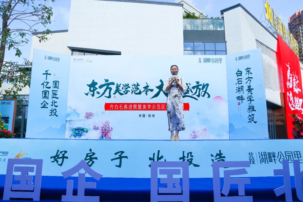 近百年后的今天,齊白石曾孫女齊駙應(yīng)北投地產(chǎn)集團(tuán)邀請,親臨盛典現(xiàn)場,向大家分享了齊白石與欽州結(jié)緣的趣事及“齊派”藝術(shù)知識,并贈予北投·湖畔公園項(xiàng)目作品《愿風(fēng)吹我到欽州》。