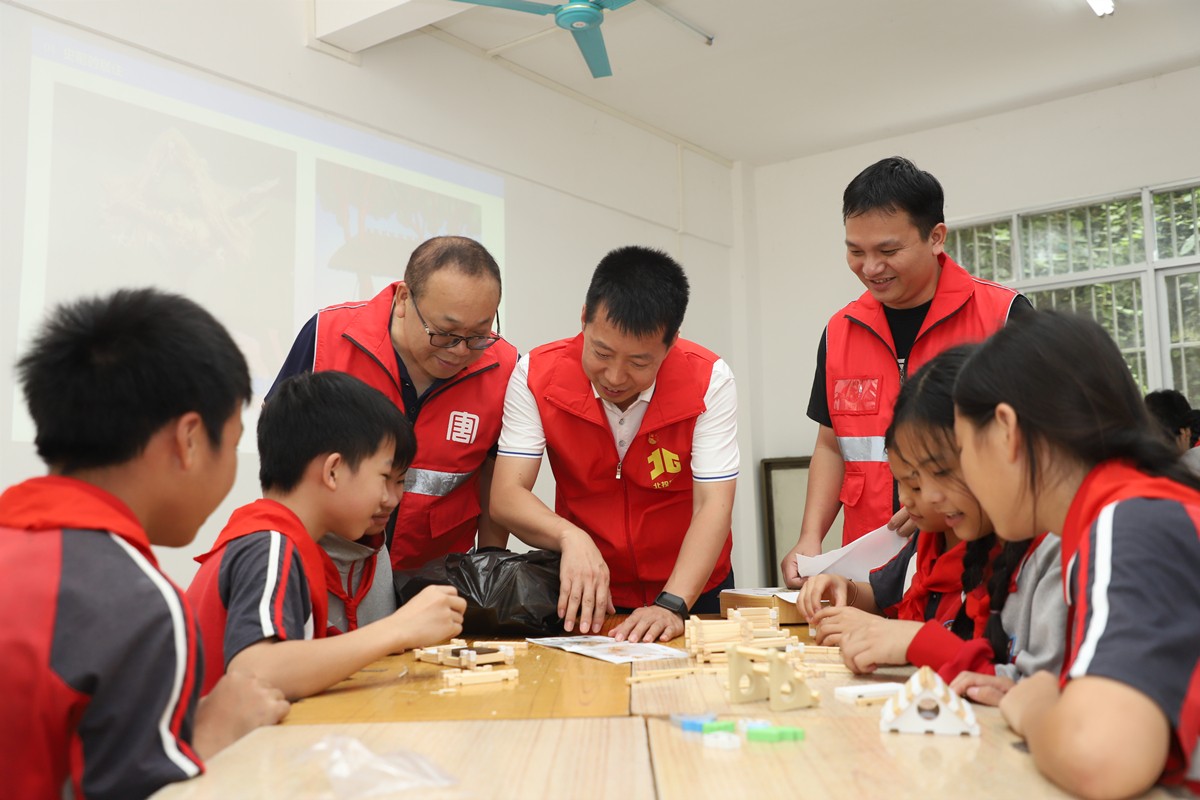 隨后,陳莉與韋桂元一同為“小小建筑師體驗室”揭牌。據悉,這是北投產城集團繼賓陽縣恭村完小后打造的第二間“小小建筑師體驗室”,是北投產城集團積極參與希望工程美育“壯苗”行動服務項目的重要行動。下一步,北投產城集團將不定期開展形式有趣的沉浸式建筑體驗活動,活躍學生的思維,激發學生在日常生活中積極發現并探索建筑的熱情,同時鍛煉他們的動手實踐能力。